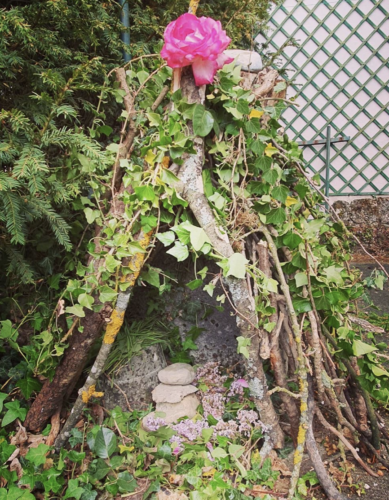 Après quelques fiches terminées, avec la Schtroumpfette, nous avons construit une cabane pour Pépito, le lutin du père Noël, qui est actuellement confiné dans notre commune. Nous la terminons juste avant l’averse, comme ça, nous avons pu vérifier l’étanchéité du toit: Pépito sera au sec et la Schtroumpfette pense qu’il trouvera facilement ce nouvel abri car il est intelligent…😉😍